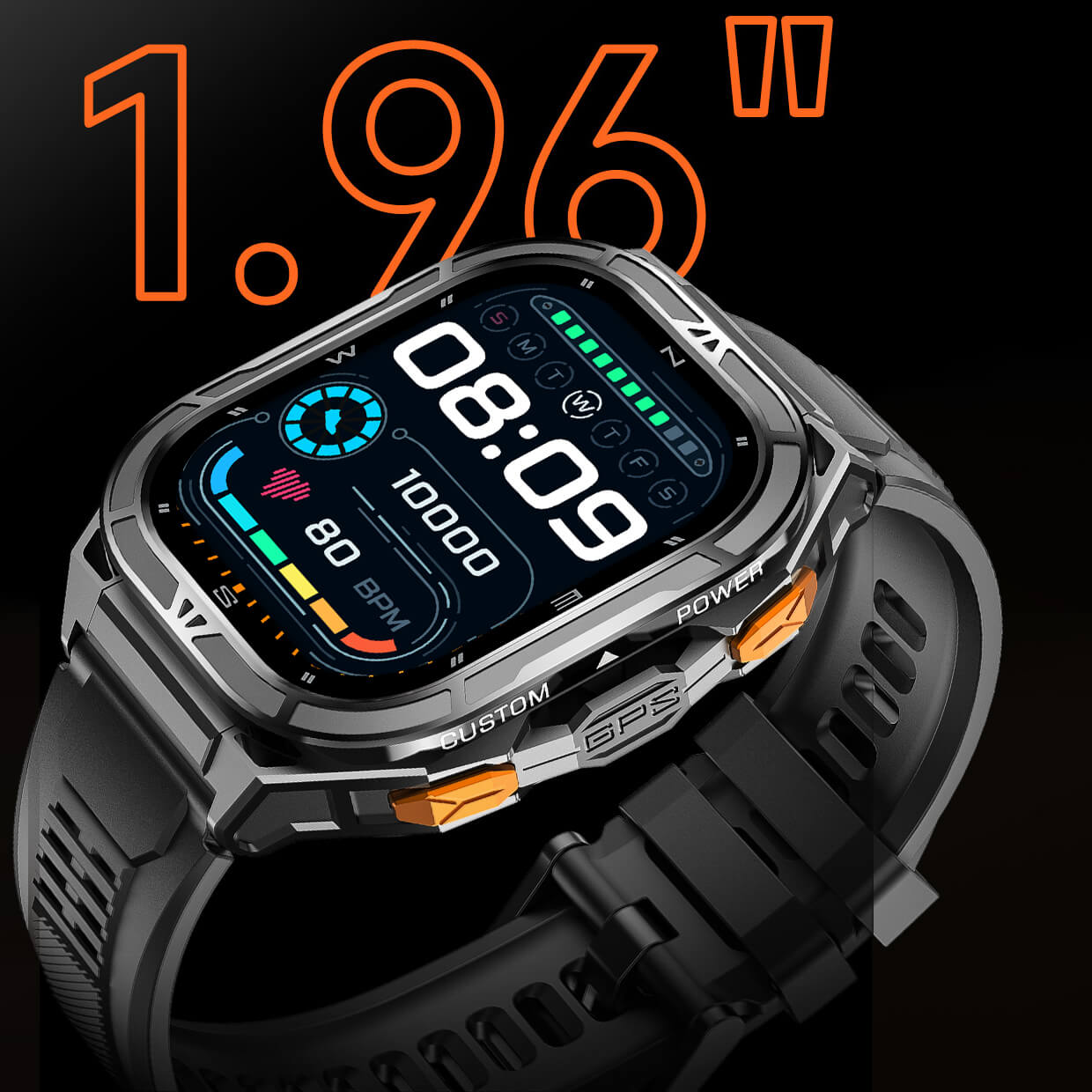 A 1.43-inch high-resolution touchscreen, three buttons for smooth navigation, and an interchangeable silicone strap for different styles and needs. Lightweight and ergonomic for everyday use and workouts. -